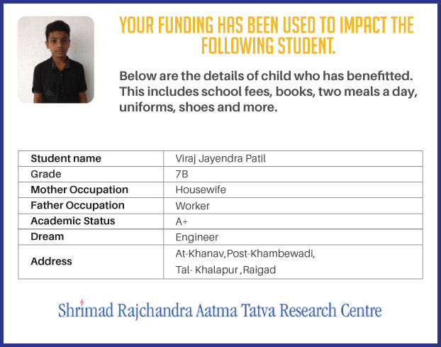 Shree Raj Educational Centre is a unit of Shrimad Rajchandra Aatma Tatva Research Centre. The Research Centre is established in 2004 at Parli (Maharashtra) and represents the coming together of individuals from diverse backgrounds and faiths who through common ground, aspire for inner evolution for Self and for the world around them. The Centre also operates numerous Social Service projects in the fields of Education, Health and Women Empowerment among others, across various cities and in its own little way is transforming the lives of less - privileged.