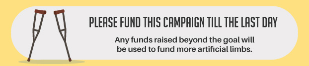 We are raising money to cover the cost of prosthetic limbs & the smallest amount you contribute will help them walk again and find jobs and ensure that the condition of the entire family is improved. Once the campaign ends, regular updates will be posted to keep the funders abreast of which person received the prosthetic limb.
