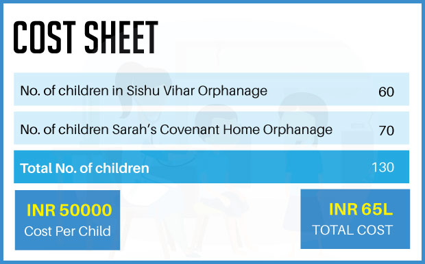 A total of 60 children from Sishu Vihar Orphanage and 70 children from Sarah’s Covenant Home Orphanage (total of 130) have significant physical, neurological and neurodevelopmental disorders. Comprehensive assessments and evaluation will be conducted for all these 130 children, which will aid in curatively treating & rehabilitating the existing neuro-developmental disorders, leading to a better Quality of Life. It costs INR 50000 per child to do comprehensive screening and diagnosis.