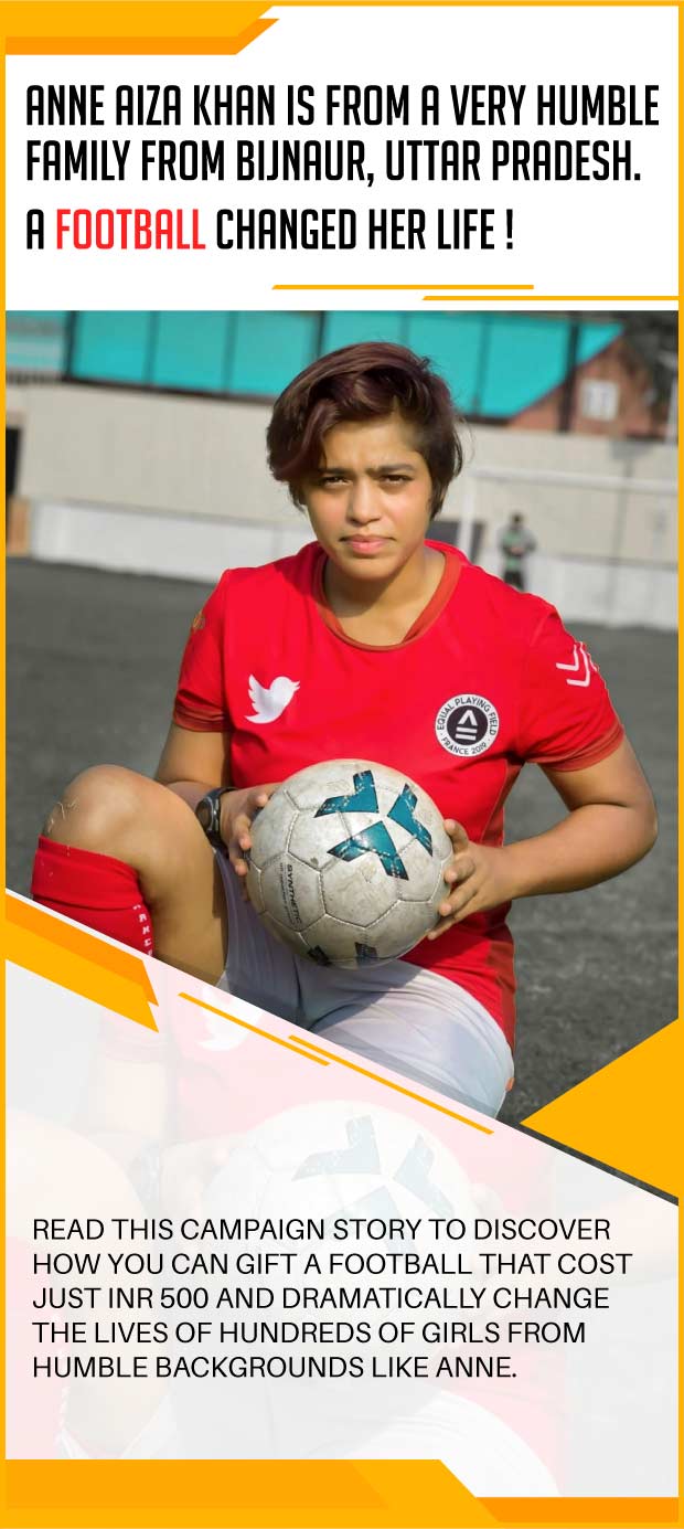 JUST INR 500 WILL HELP GIFT A FOOTBALL TO A GIRL.
