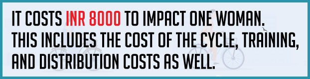 The cost of teaching them, giving them a cycle and monitor the entire project is just INR 8000 per woman. This has an impact not just for a month or year but a lifetime. The cycles that are being given to them are ladies cycles with a front basket which will make it convenient for them to use irrespective of what they are wearing .