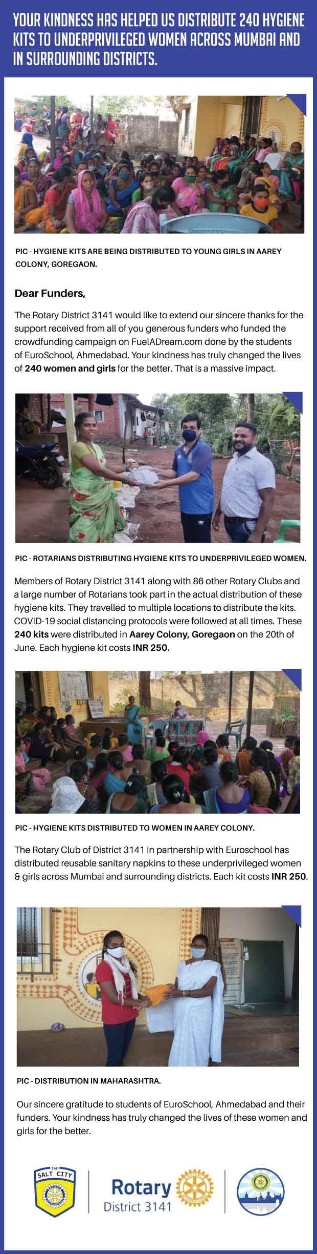 Funding for this campaign is eligible for tax breaks as ROTARY CLUB OF BOMBAY PIER CHARITABLE TRUST is a registered NGO & you can avail of benefits under section 80G of IT act. Foreign funding is not accepted.