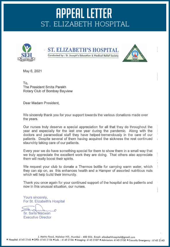 My fellow Rotarians and I, at the Rotary Club of Bombay Bayview have taken it upon ourselves to support these nurses in every way possible. We aim to raise INR 45L to provide 5000 Wellness kits which will help fight their fatigue and give them the much-needed nutrition that they have been foregoing. This will impact 5000 nurses. The kit contains a hot flask and assorted dry fruits. The flask can be used to carry warm water or immunity drinks, to sip on and keep the germs away. The dry fruits are loaded with vitamins and proteins and will help in boosting energy and immunity.