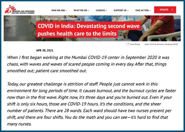 Healthcare workers have been working continuously since the onset of the pandemic. The second wave of COVID-19 has put a massive strain on hospitals and consequently on NURSES. There is a sense of alarm regarding burnout among healthcare professionals across India. In order for the healthcare workers to do their job, they need to be mentally and physically able to.