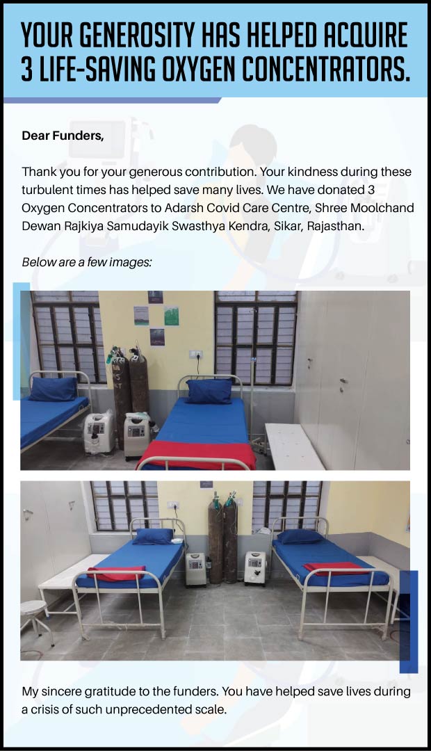 I am running a crowdfunding campaign to help raise funds for oxygen concentrators and critical medical supplies.