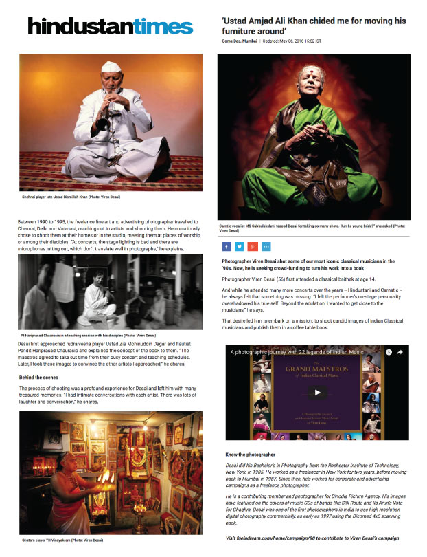 I first approached Ustad Zia Mohinuddin Dagar and Pandit Hariprasad Chaurasia, explaining the concept of the book that I wanted to create and how I wanted to showcase them. They graciously agreed, found time from their busy concert and teaching schedules. It was the images of these two greats that I used to rope in the rest of the maestros who finally made up this book. This is how I began my journey to showcase these great artists as they had never been seen before.