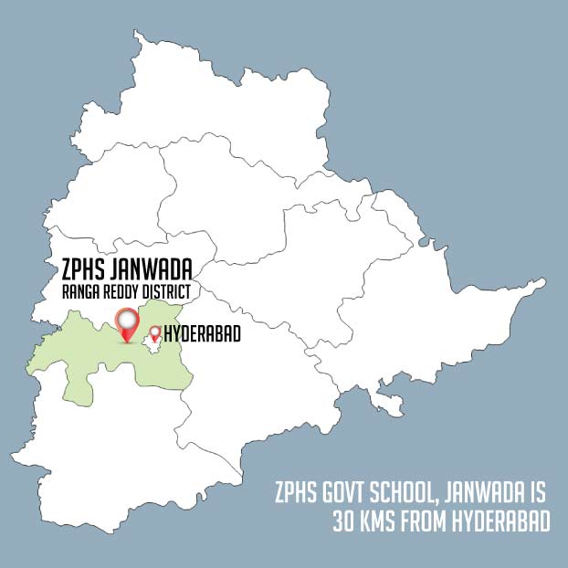 The above image is the geotag for ZPHS Janwada. The school is located in Ranga Reddy district which is 30kms from Hyderabad.