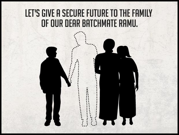 The least we can do as batchmates, friends and fellow human beings is give a little so that together we make a big difference to his family. The funds we are raising will possibly be enough to help the family for a year. So please continue funding till the last day irrespective of the amount we raise, as the more we collect the more breathing space the family has financially.