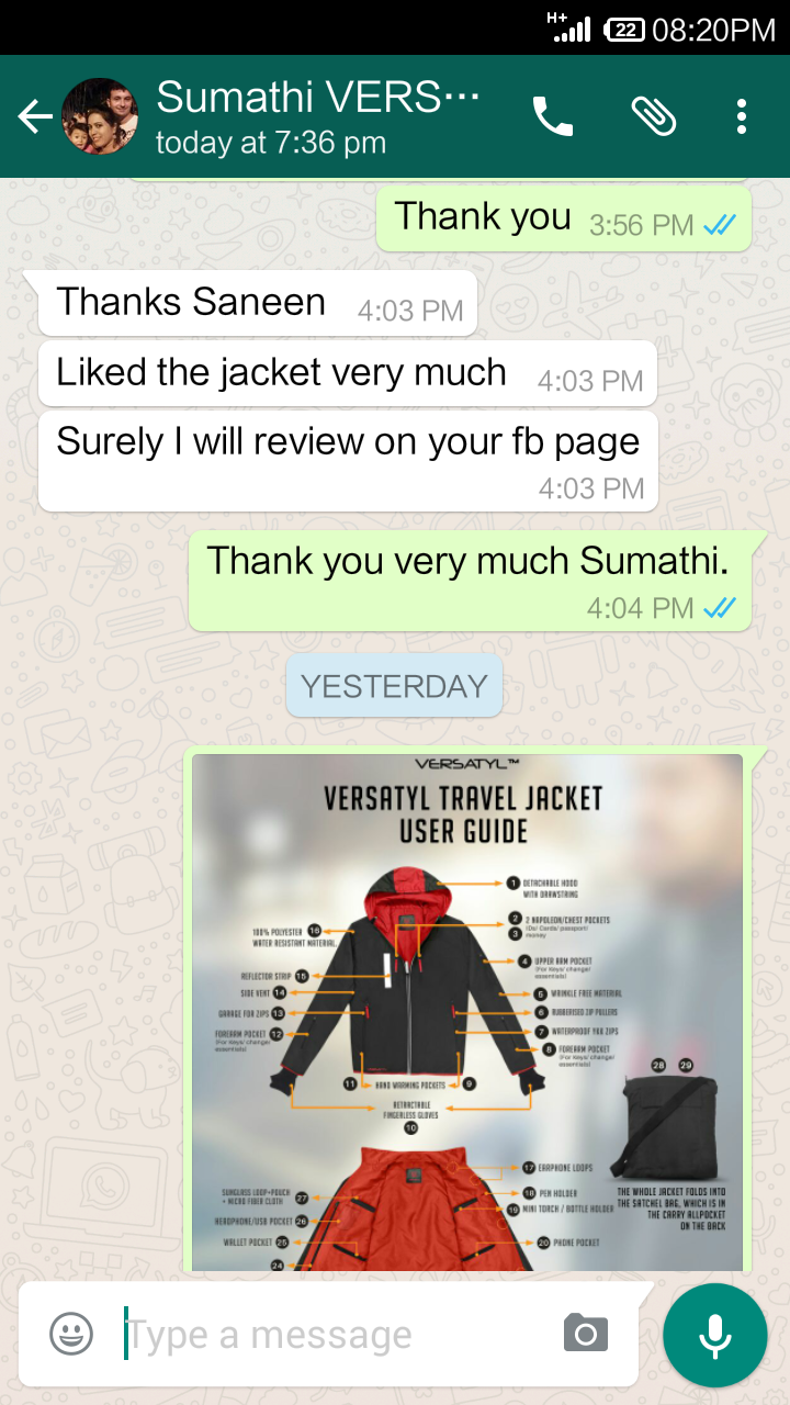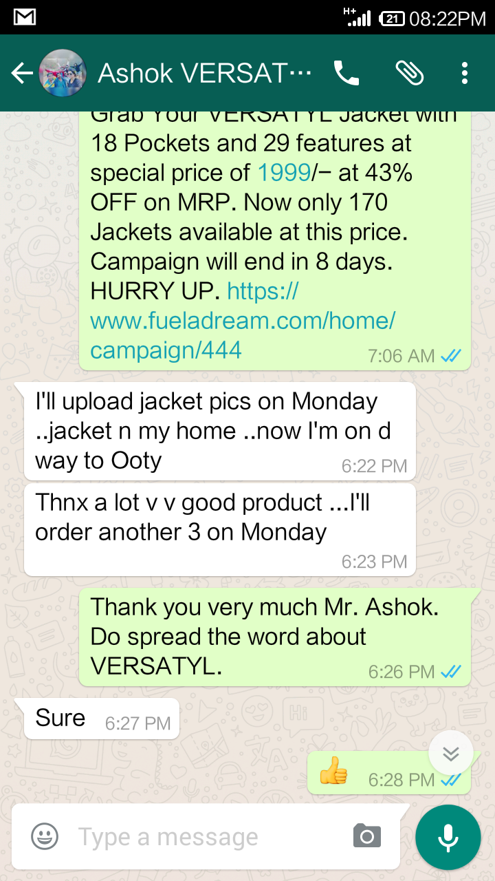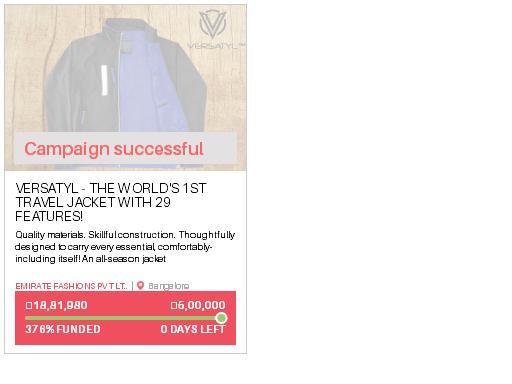 Emirate Fashions Pvt Ltd has a long history in clothing manufacturing and has been making garments for a few of the reputed brands in India. The VERSATYL is the result of massive demand that we've seen from observing travelers, bikers, cyclists & the outdoor person. Rather than come up with another Jacket, we decided to give "people on the move" a piece of clothing that gave them the freedom to carry all their essentials around on their person! We're launching this campaign on fueladream.com to make it easier to reach out to customers globally!