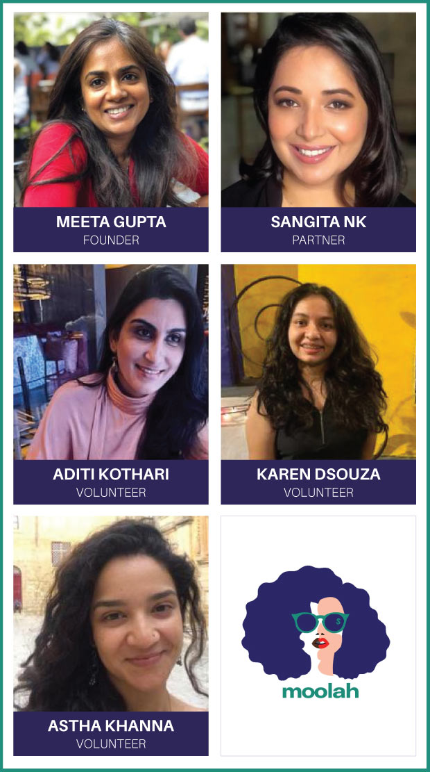 MOOLAH was started by Meeta Gupta in July 2020 to financially empower urban women so that they are ready to face the world. Moolah aims to handhold each woman in her personal journey to reach her own financial goal by teaching them about finance and money. In its current form, Moolah has over 700 women enrolled on numerous WhatsApp groups (only through word of mouth), where a one-minute read is posted every day.