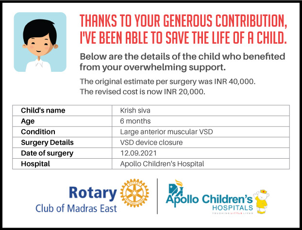 The Apollo Children's Hospital in Chennai is performing these surgeries at a much much lower cost of between INR 1.10L - INR 1.85L depending on the complexity. Grants and other donors and subsidies from paid surgeries will take care of part of the costs. We need just INR 40000 to make one surgery happen.