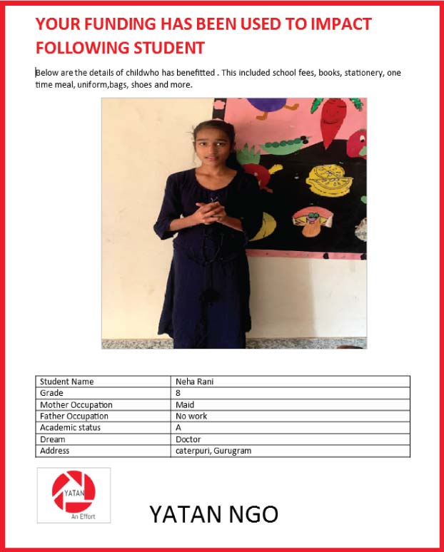 I have undertaken this campaign because I think it is incredible to impact the life of an underprivileged girl. Many families have lost their source of income during the pandemic and are unable to send their daughters to school. The financial burden of the families have fallen on the shoulders of these young girls. They are forced to work as maids, vegetable vendors, cleaners etc.