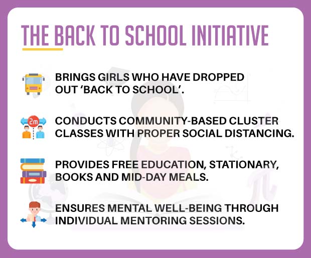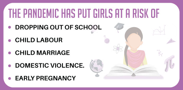 The pandemic has severely impacted the education of girls from low-income homes. Since schools are closed, education has come to a standstill for many of them. This has lead to the girls falling prey to child labour, early marriage and domestic violence.
