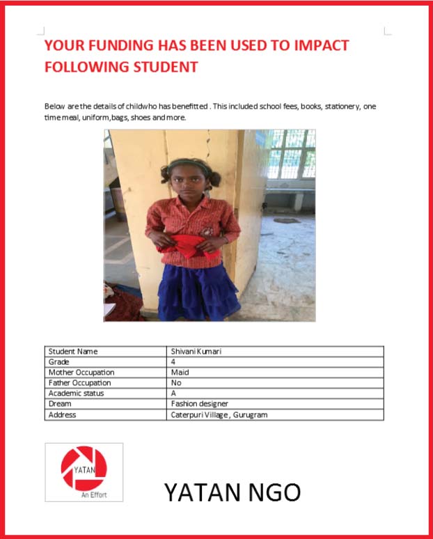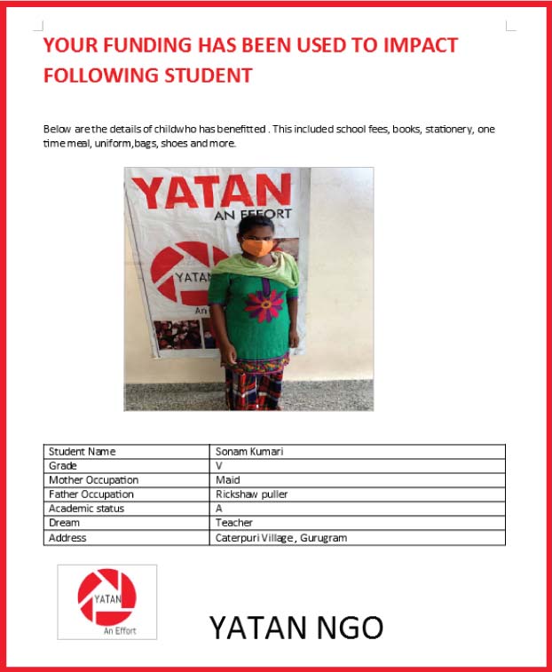 Funding for this campaign is eligible for tax breaks as YATAN is a registered and you can avail of benefits under section 80G of IT act.