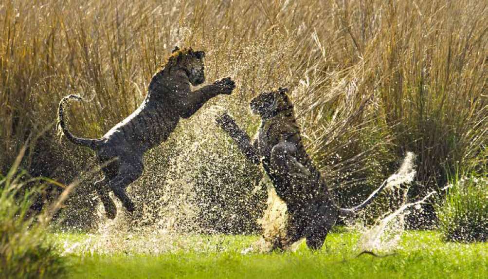 Pic: Tigers frolic in a stream. They love water unlike other big cats and are adept swimmers.They enjoy bathing and often play in the water when young. As adults, they often swim several kilometres to hunt or to cross rivers