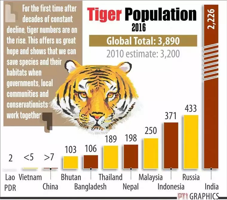 The TIGER, India’s national animal, is the largest of the cat species, and has been classified as ‘endangered’ by the International Union for Conservation of Nature (IUCN). According to the latest census, 57.2% of the world’s Tiger population is in India.