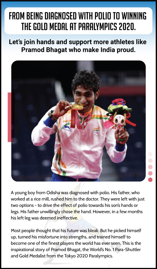 We were all very excited about the performance of the Paralympians at the recent TOKYO PARALYMPICS . However very few of us realise the challenges and tribulations that each one of these athletes has gone through to get here. They need constant help, training and support to get to the podium. Considering that they are all athletes with a range of physical disabilities - sports for them is a massive confidence booster and gives them immense pride.