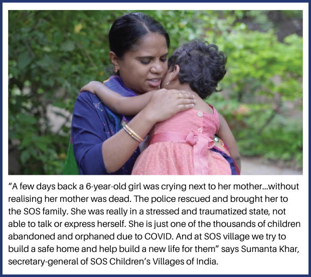 Recent reports state that as many as 30,000 children have lost a parent during the COVID-19 pandemic with more than 3,000 having been orphaned by the death of both parents. There is an urgent need to provide immediate support to help children cope with the trauma of the loss of a parent and then to establish mechanisms for ensuring their long-term needs till they become independent.