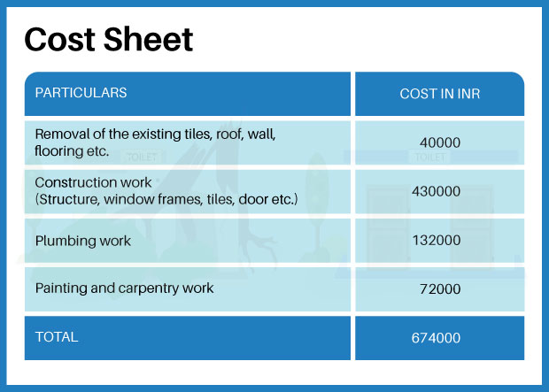 The total cost of construction is INR 6.7L. (This includes three cubicles each for boys and girls.)