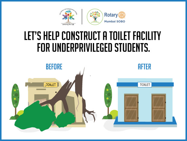 My classmates and I, from the Ram Ratna International School in Mumbai have taken it upon ourselves to help construct a toilet and provide a better environment for these underprivileged students. This is being done in partnership with the Rotary Club of Mumbai SOBO and Rotary Club of Worli Bombay Trust. The plan is to construct one building which would have three cubicles for girls and three cubicles for boys. This will eliminate open defecation, instil good hygiene practices, give them security and privacy.