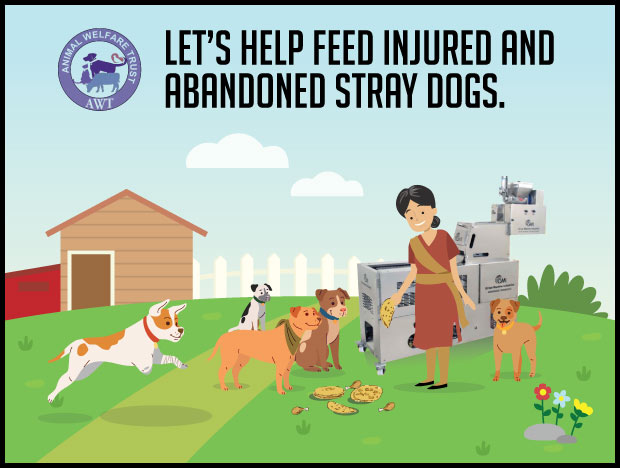 Each dog eats 5 rotis which add up to 2500 rotis a day. It is becoming tough for AWT (Animal Welfare Trust) to feed these strays as making 2500 rotis a day is a tedious and cumbersome task. It takes a minute to make a roti. Help AWT feed more needy strays by investing in a ROTI MAKING machine.