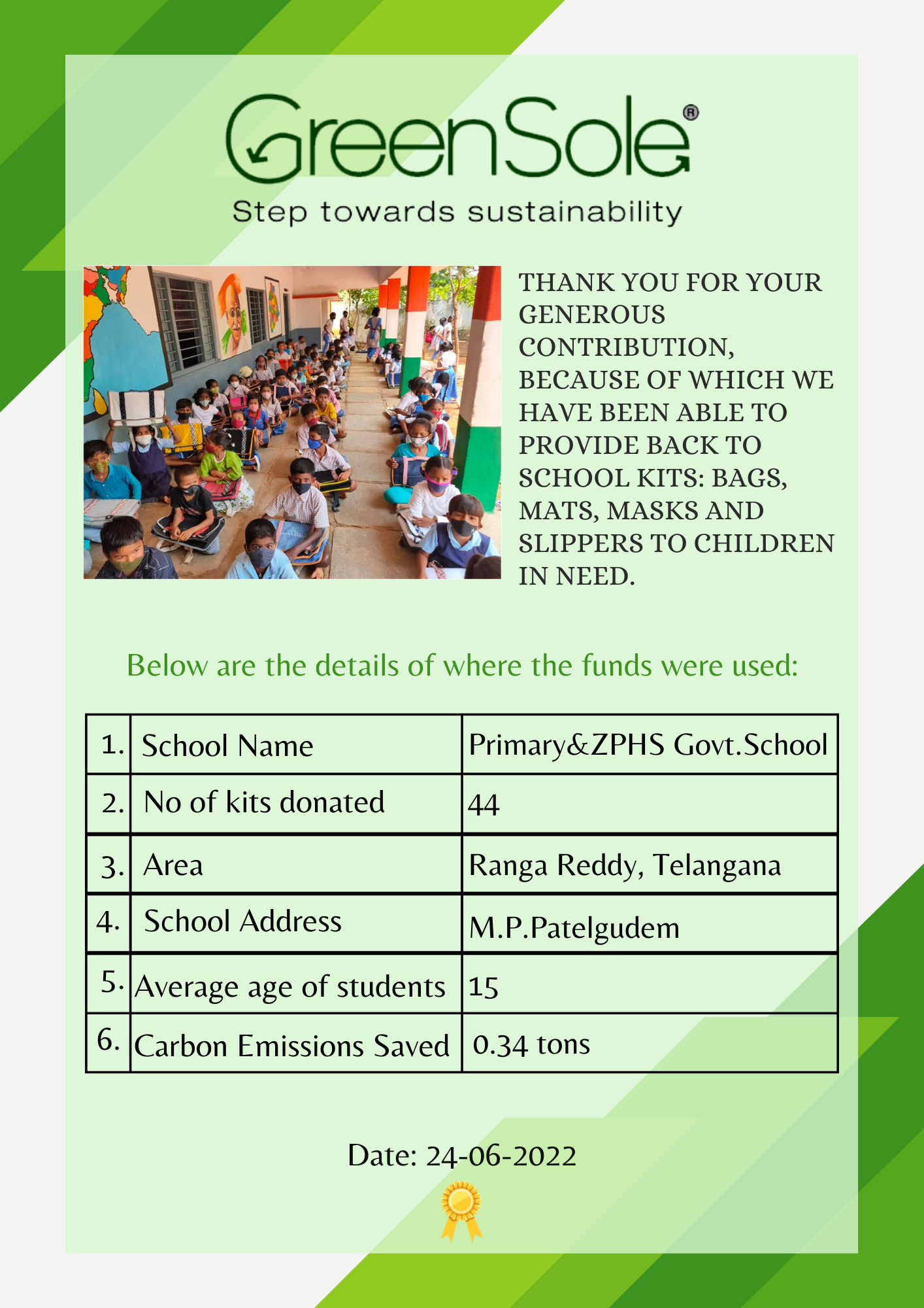 This Greensole initiative plans to impact rural students in rural areas of Telangana. Greensole is located in Navi Mumbai, Maharashtra.