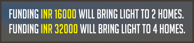 It costs only INR 8000 to light up one house. INR 16000 can help light up 2 houses.