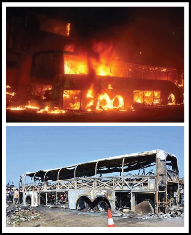 Pic: Here's the chilling aftermath of the Volvo bus that caught fire in the horrific accident. (For more information about the accident, please check the news articles below).