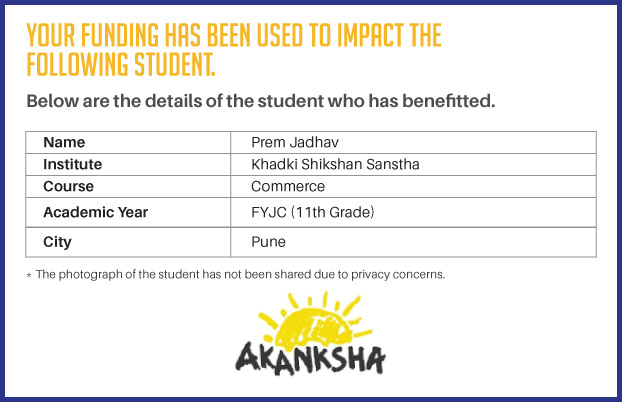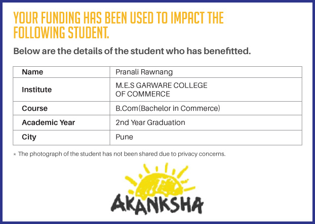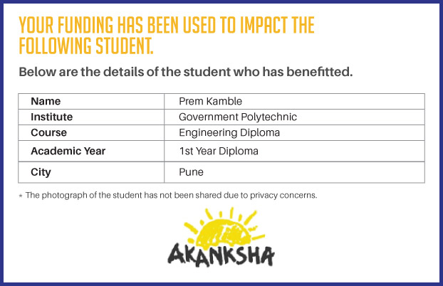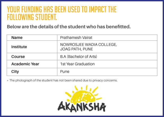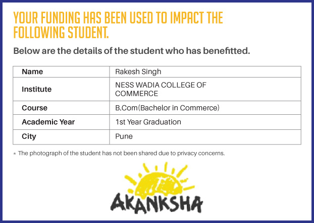 Each scholarship costs INR 15000 and helps fund a student and higher education for 1 year.