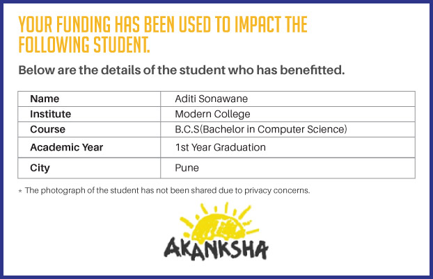 Each scholarship costs INR 15000 and helps fund a student and higher education for 1 year.