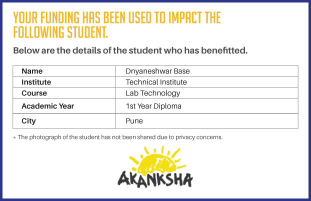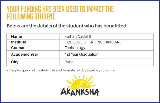 Each scholarship costs INR 15000 and helps fund a student and higher education for 1 year.