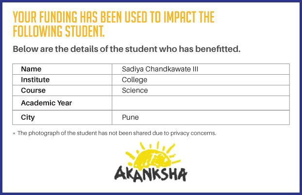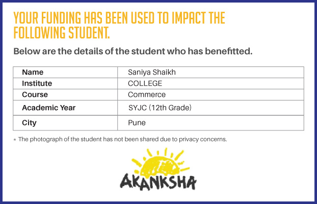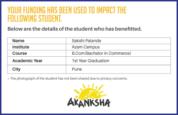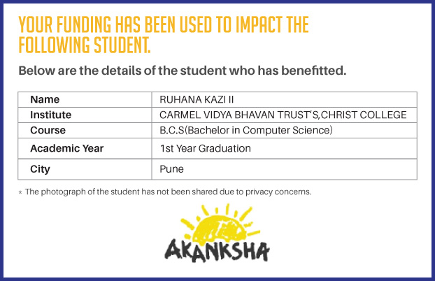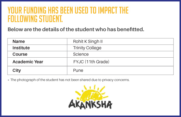 Each scholarship costs INR 15000 and helps fund a student and higher education for 1 year.