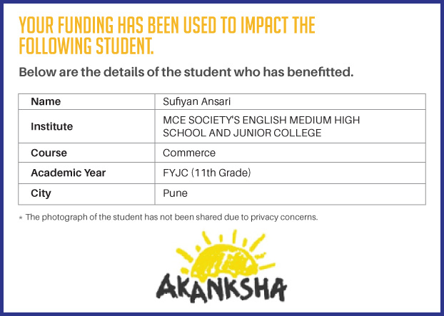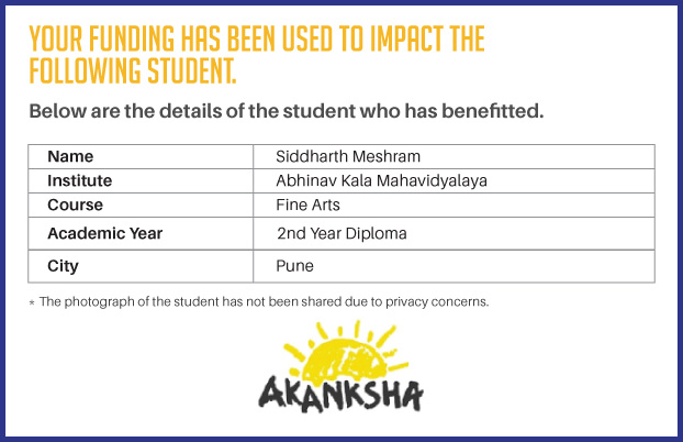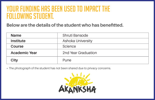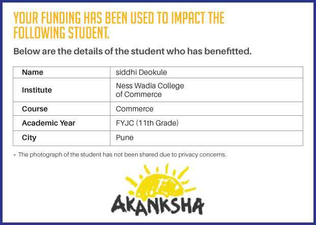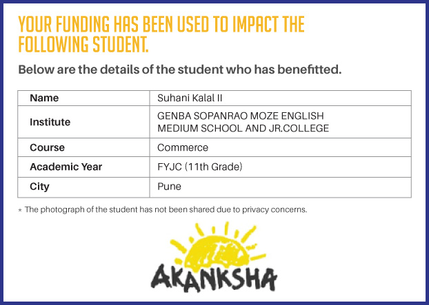 Each scholarship costs INR 15000 and helps fund a student and higher education for 1 year.