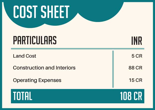 The total project cost is currently estimated at INR 108 Crores. The Land cost will be about INR 5 crores, Construction and Interiors will be about INR 88 crores and the balance of INR 15 crores will be operational expenses.
