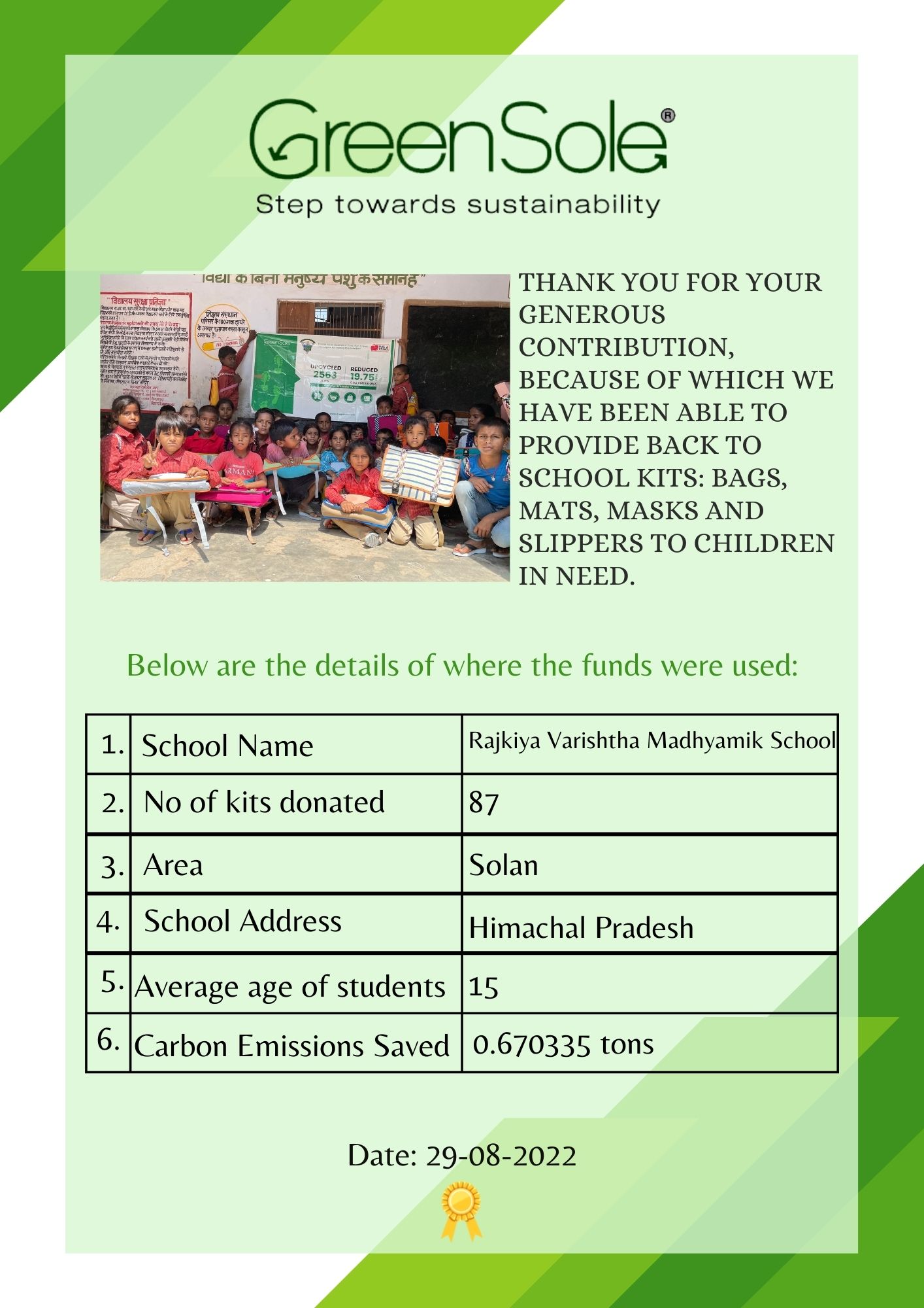 The distribution will take place in schools across Himachal and Punjab. Greensole is located in Navi Mumbai, Maharashtra.