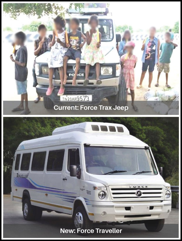 Until now, the home relied on a Force Trax Jeep to transport the children. But due to extensive wear and tear, their growing needs and necessary repair cost, they want to purchase the Force Traveler bus which is a 25-seater.