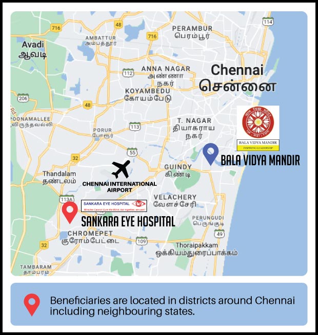 - A rural outreach program on eye care with a thrust on villages in Chennai, Kanchipuram, Tiruvallur and Chittoor (AP) districts.