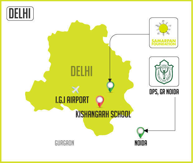 The Samarpan Foundation runs a primary school in Kishangarh village, Delhi. The students at the school are not only given an education they are also provided with healthy meals, uniforms books stationery and a lot more. The Primary School also serves as a Bridge School for late starters covering nursery to kindergarten classes (children aged 3 to 5 years) and Primary Education: Class 1 to 5 (children aged 6 to 10 years). The meals are a balanced diet that consists of pulses, cereals, vegetables. Fruits are provided. There are 240 children in this program. School timings are from 8:30 am to 1:30 pm approx. Both breakfast and lunch are given from Monday to Saturday.