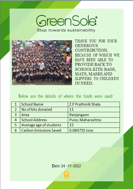 The distribution will take place in schools across Maharashtra. Greensole is located in Navi Mumbai, Maharashtra.