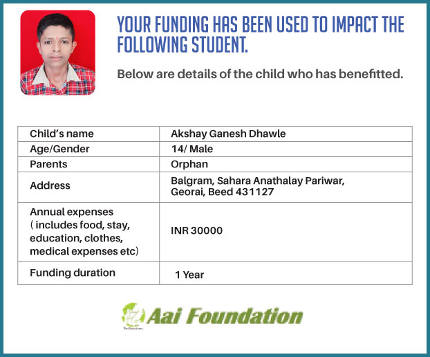 I have undertaken this campaign because I think being able to impact the life of an orphan (who possibly is my age or younger) by giving them education, a place to stay, food, medicines, and other skills for an entire year would be incredible. This will definitely transform their lives and help them have a better future. Through this campaign, I want to create the same opportunity for all those less fortunate children so that they get good food, a safe place to stay, clothes, medical care and a great education. The fact that just INR 2500 can make a difference in the life of an orphaned child for an entire month made me realise that I must do something about it.