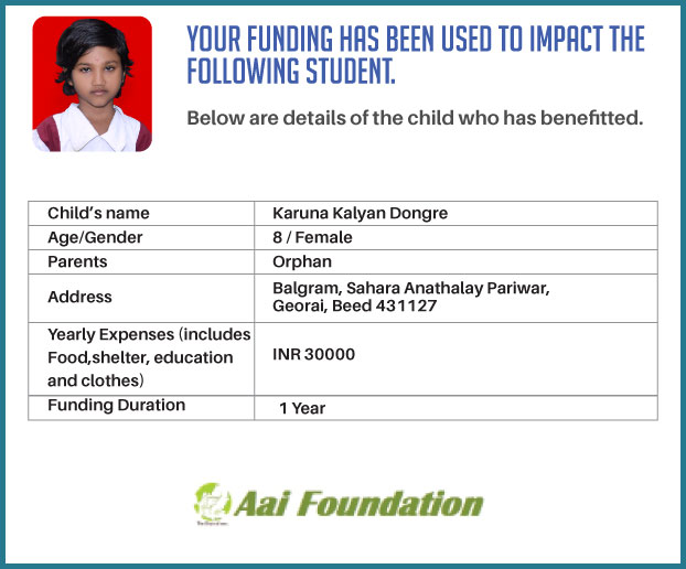 To ensure that there is complete transparency I shall get a report from Balgram (this takes between 1 to 3 months usually after the funds are raised & transferred to them) telling me who benefitted from the funding. The details will then be posted on the UPDATES section of my campaign and will be in a format like the one below. As soon as I post an update, the platform will send an EMAIL alert to all the funders - i.e. to you. Click on the link on the email and you can read about which child benefitted. That's transparent right.