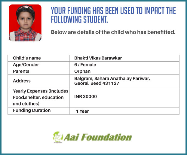 To ensure that there is complete transparency I shall get a report from Balgram (this takes between 1 to 3 months usually after the funds are raised & transferred to them) telling me who benefitted from the funding. The details will then be posted on the UPDATES section of my campaign and will be in a format like the one below. As soon as I post an update, the platform will send an EMAIL alert to all the funders - i.e. to you. Click on the link on the email and you can read about which child benefitted. That's transparent right.