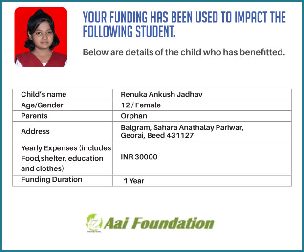 To ensure that there is complete transparency I shall get a report from Balgram (this takes between 1 to 3 months usually after the funds are raised & transferred to them) telling me who benefitted from the funding. The details will then be posted on the UPDATES section of my campaign and will be in a format like the one below. As soon as I post an update, the platform will send an EMAIL alert to all the funders - i.e. to you. Click on the link on the email and you can read about which child benefitted. That's transparent right.