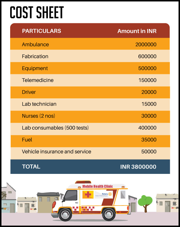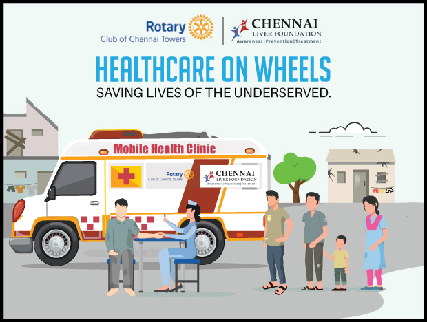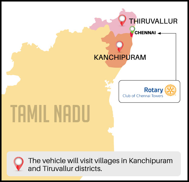 To ensure quality healthcare is available to everyone, the Rotary Club of Chennai Towers is on a mission to help set up a 'Healthcare Unit on Wheels'. We believe that the mobile healthcare vehicle will play a significant role in efficiently serving the vulnerable in remote and hard to reach areas while also providing cost-effective primary healthcare services.