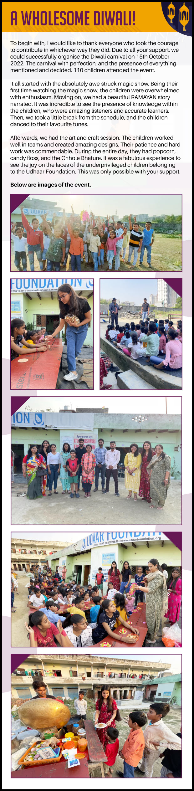 I believe that providing the young, rural youth with the worthy quality of their culture holds vital. It is important for them to experience this auspicious, holy, and strong spirit of the Diwali festival. I strongly believe, more than just helping the ones in need, it is important for them to also experience delight, joy, and fun, the way they deserve to. Due to the challenges present in their life, they are afraid and unable to pursue themselves forward.