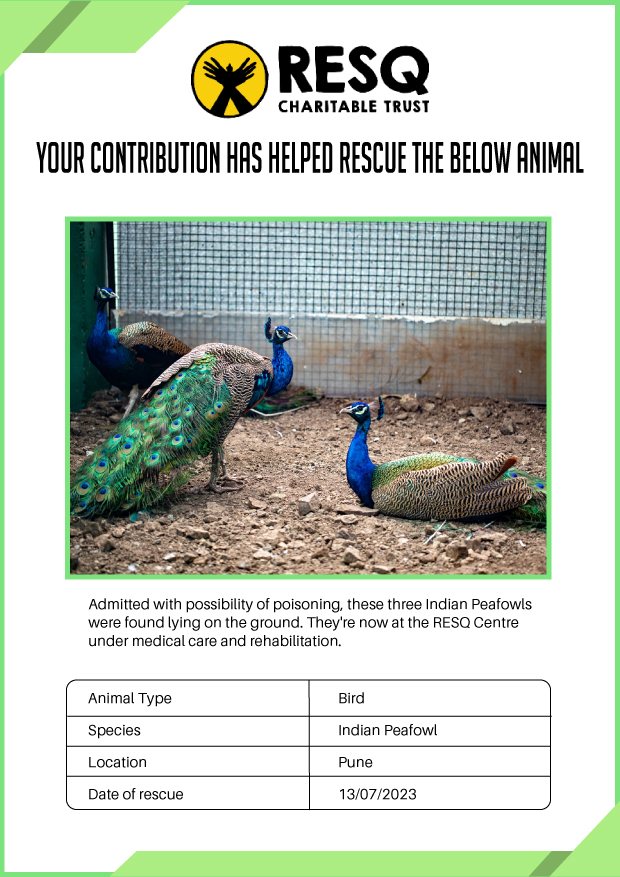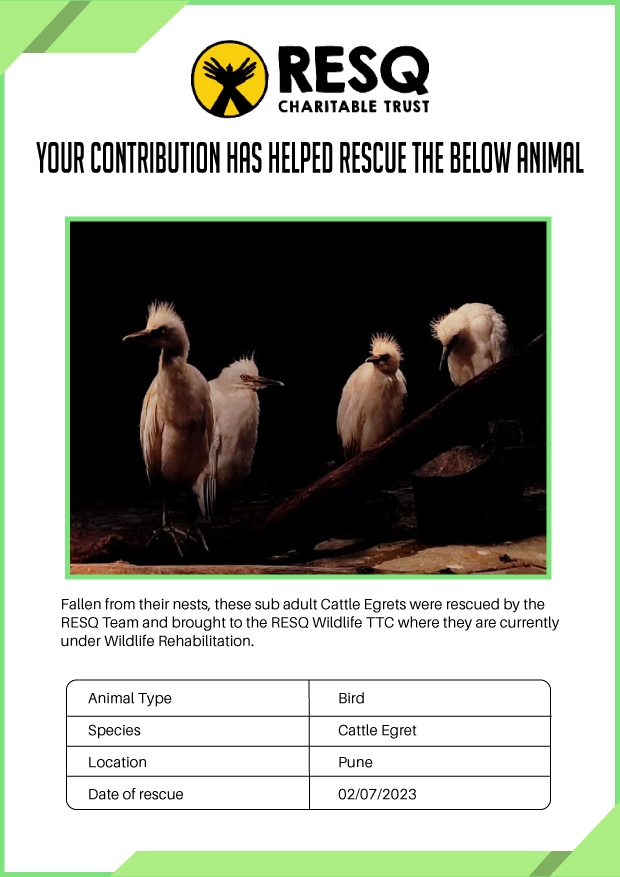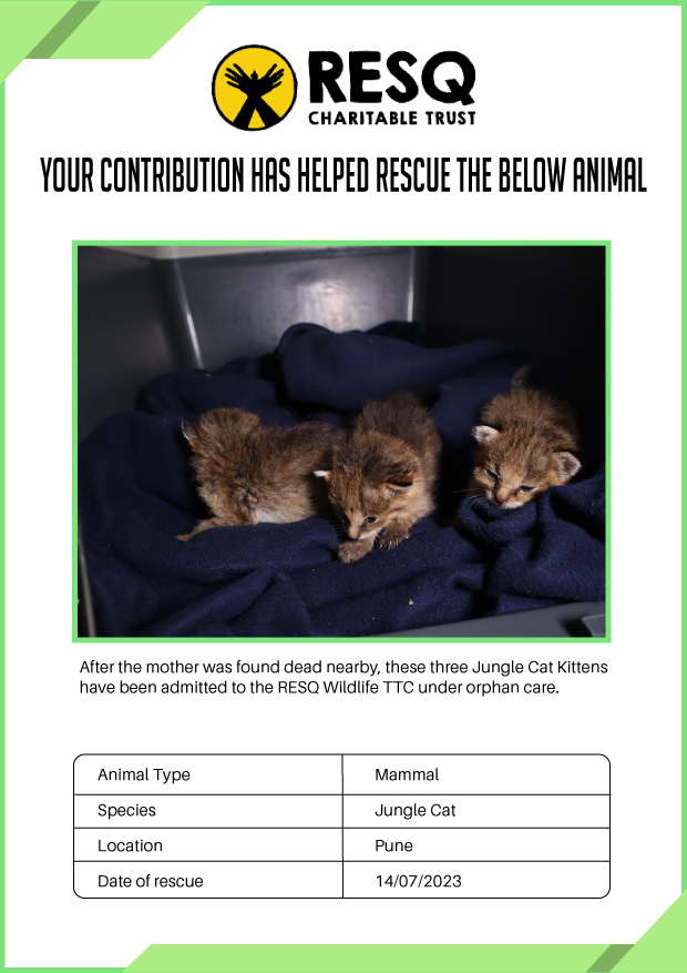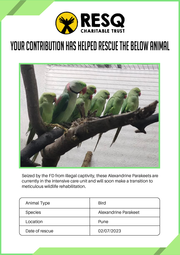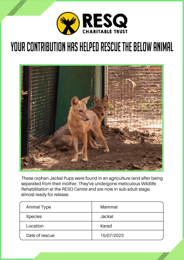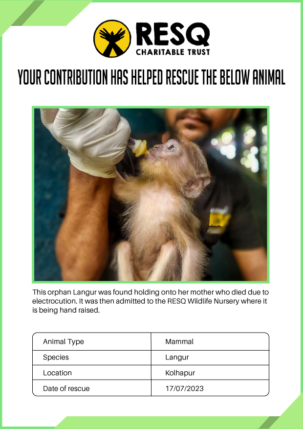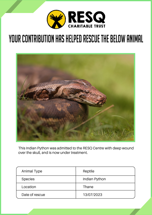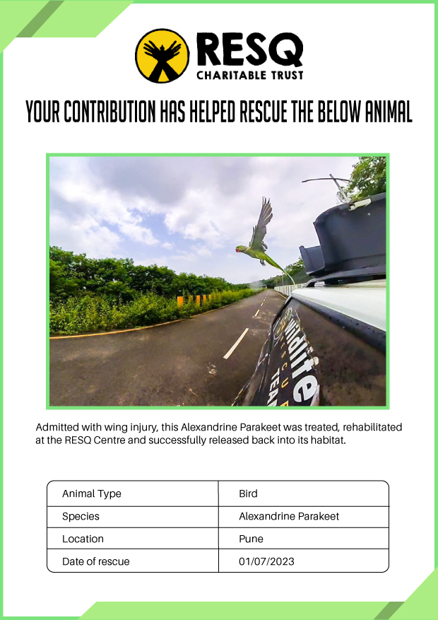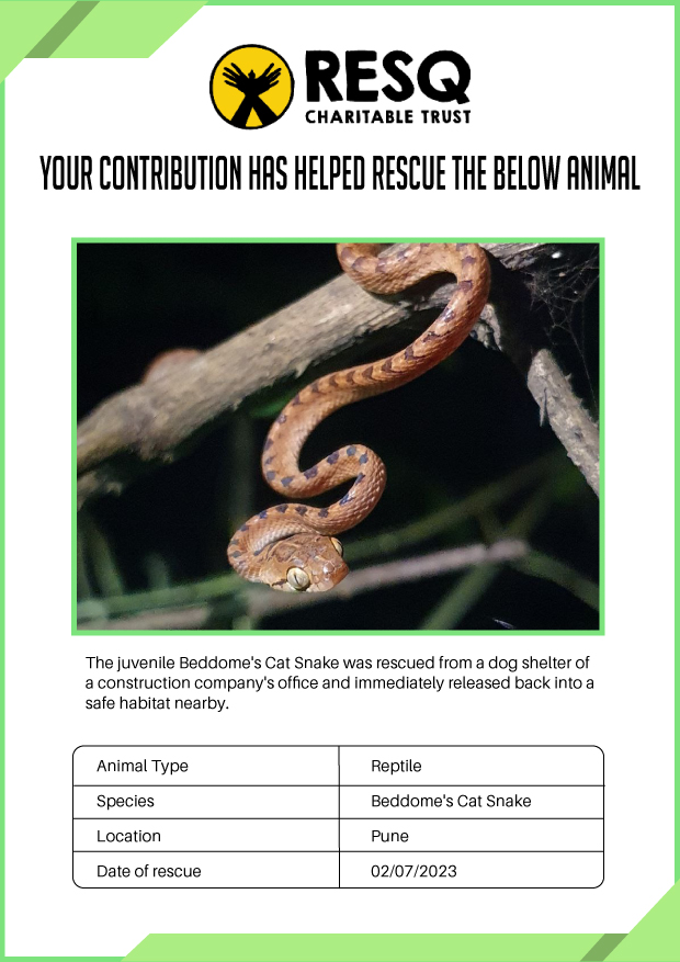 RESQ was founded in 2007 to provide emergency aid to animals in distress. Since then, the rescue and rehabilitation work of the organisation has provided aid to thousands of animals of over 200+ species, improved public health and safety outcomes, and actively worked on preventing human-animal conflict across multiple urban and rural ecosystems.