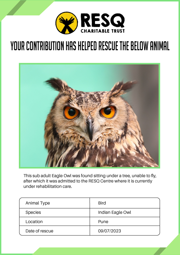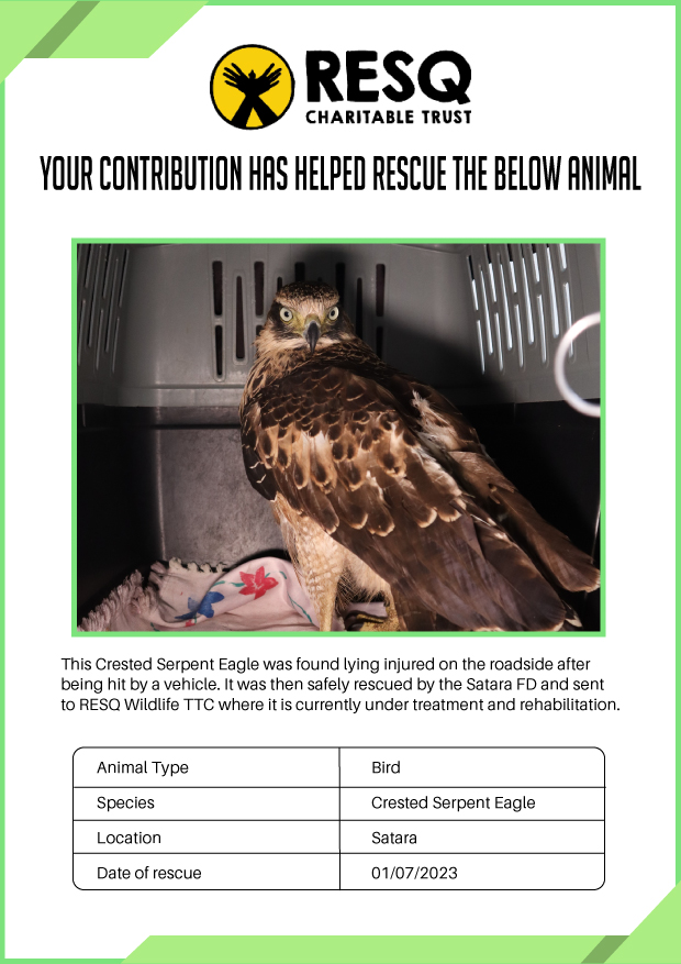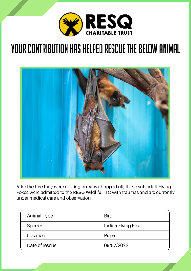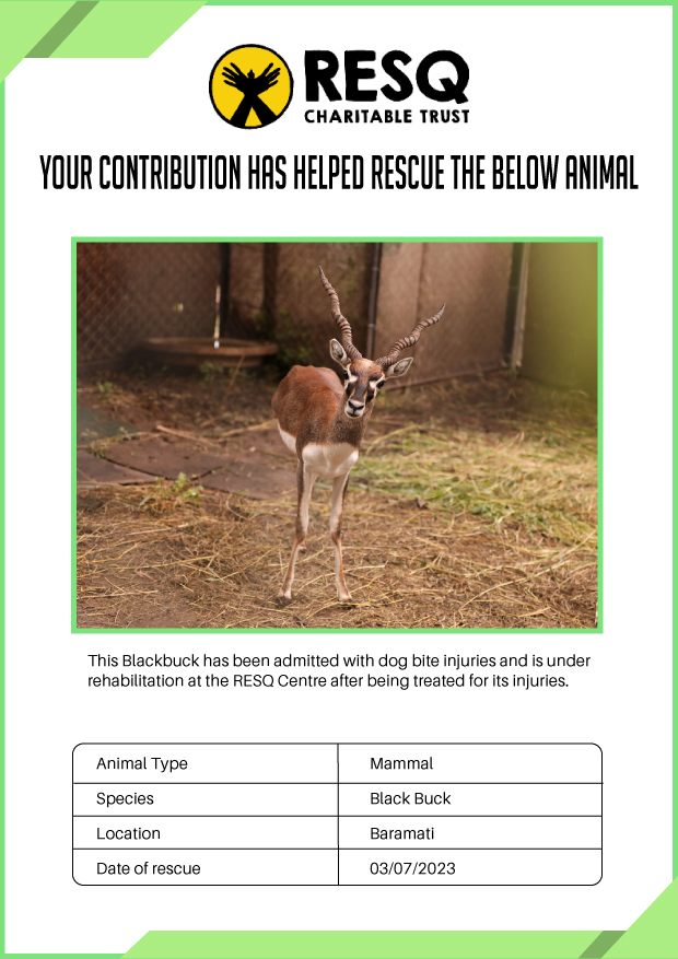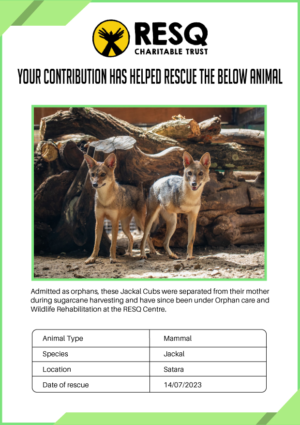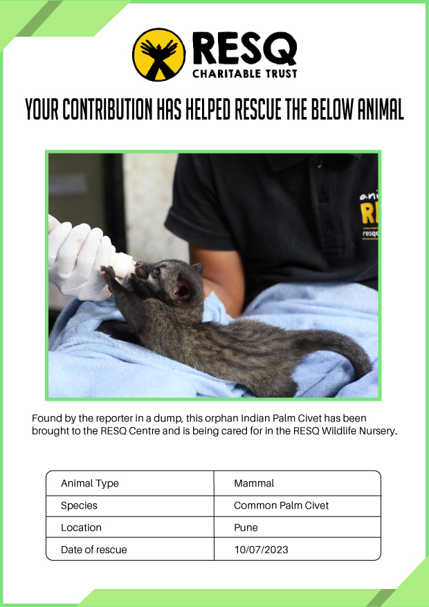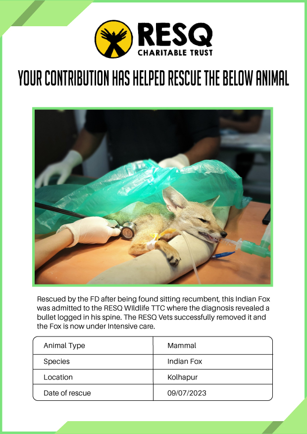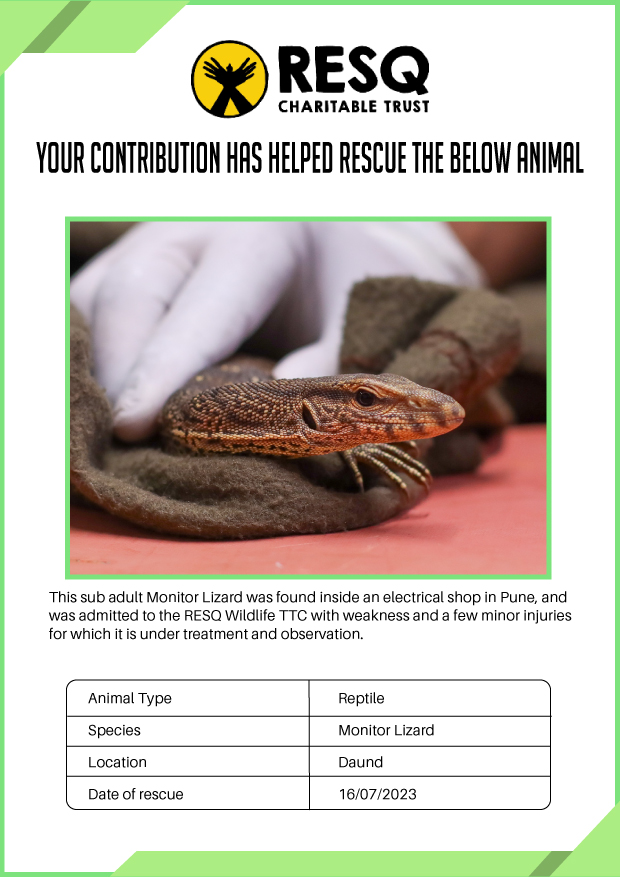 Maharashtra is home to a diverse population of wild animals, many of whom are key species identified to be globally declining. The Pune-based NGO - RESQ provides emergency aid to animals in distress. Thousands of wild animals come to RESQ annually who are either injured, sick, orphaned, or victims of wildlife trafficking and illegal captivity.