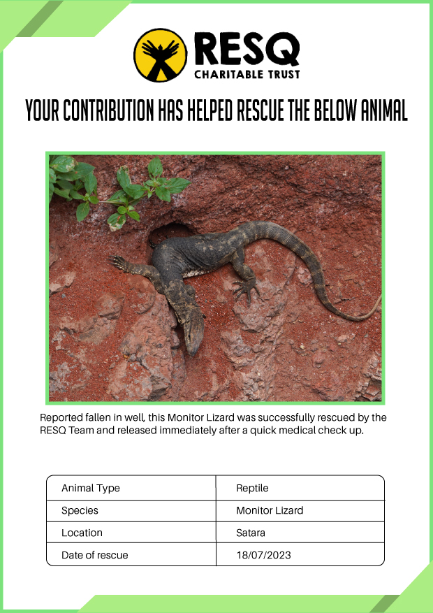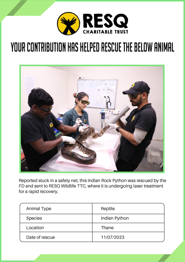 I was delighted to learn that the NGO RESQ works tirelessly to help animals in need. The NGO is authorised by the Government of Maharashtra to conduct state-wide wildlife rescue in collaboration with the Maharashtra Forest Department.