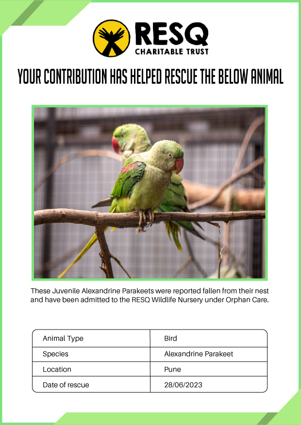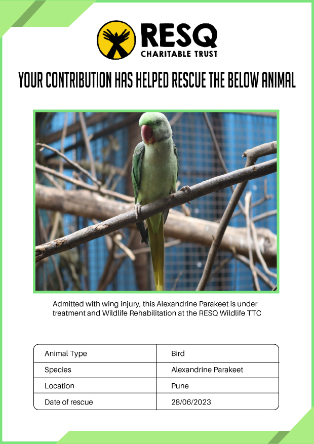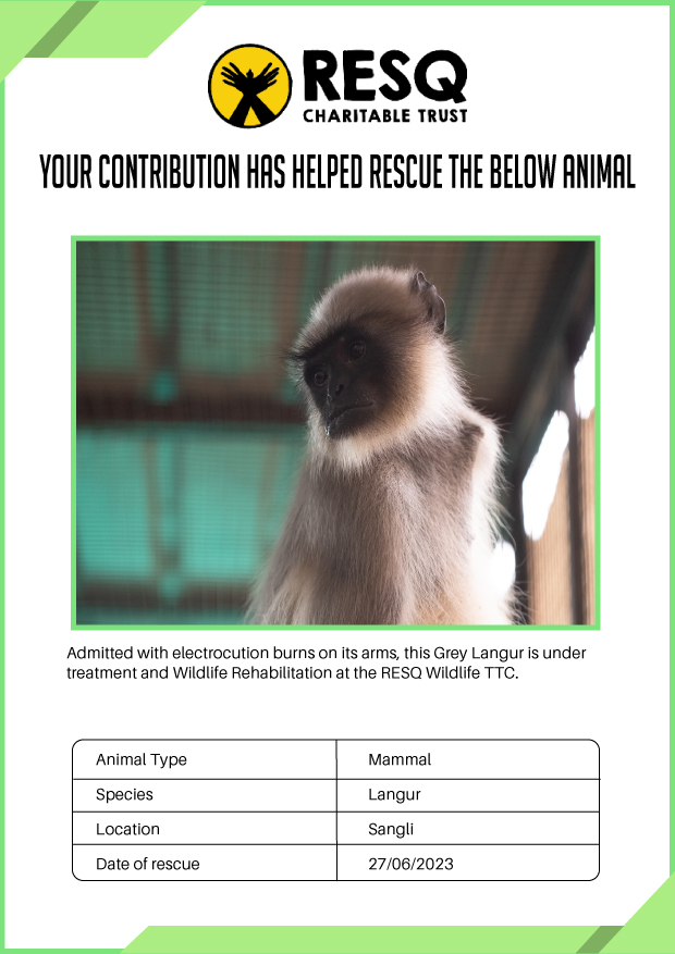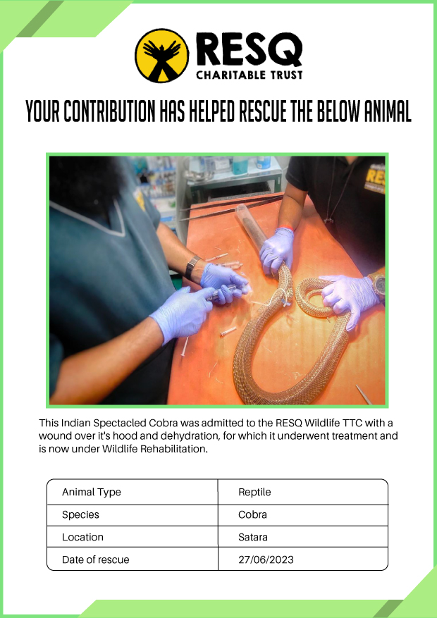 RESQ was founded in 2007 to provide emergency aid to animals in distress. Since then, the rescue and rehabilitation work of the organisation has provided aid to thousands of animals of over 200+ species, improved public health and safety outcomes, and actively worked on preventing human-animal conflict across multiple urban and rural ecosystems.