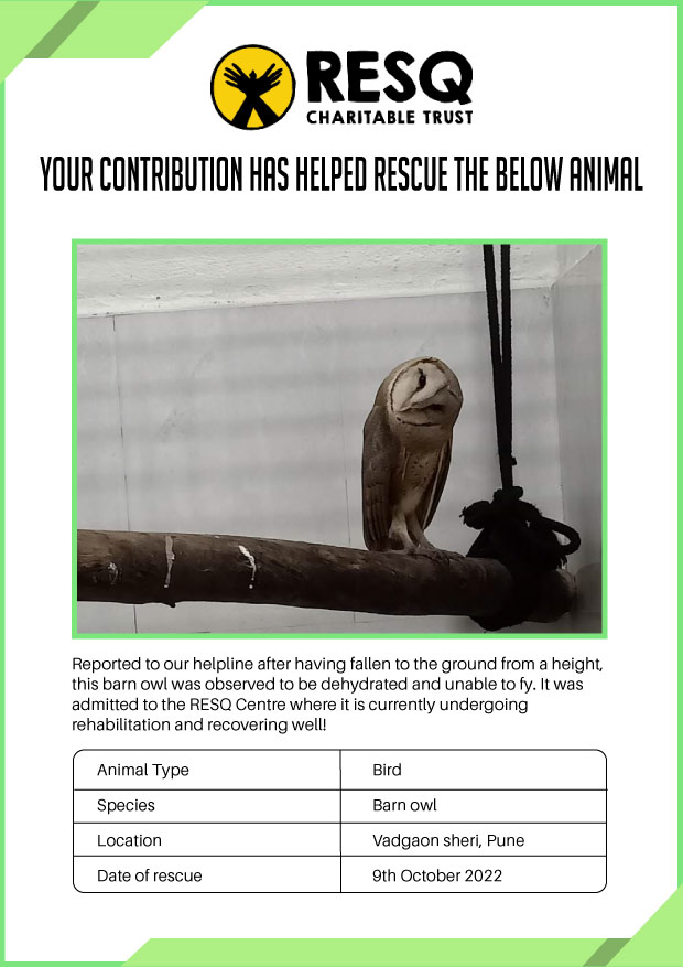 I was delighted to learn that the NGO RESQ works tirelessly to help animals in need. The NGO is authorised by the Government of Maharashtra to conduct state-wide wildlife rescue in collaboration with the Maharashtra Forest Department.